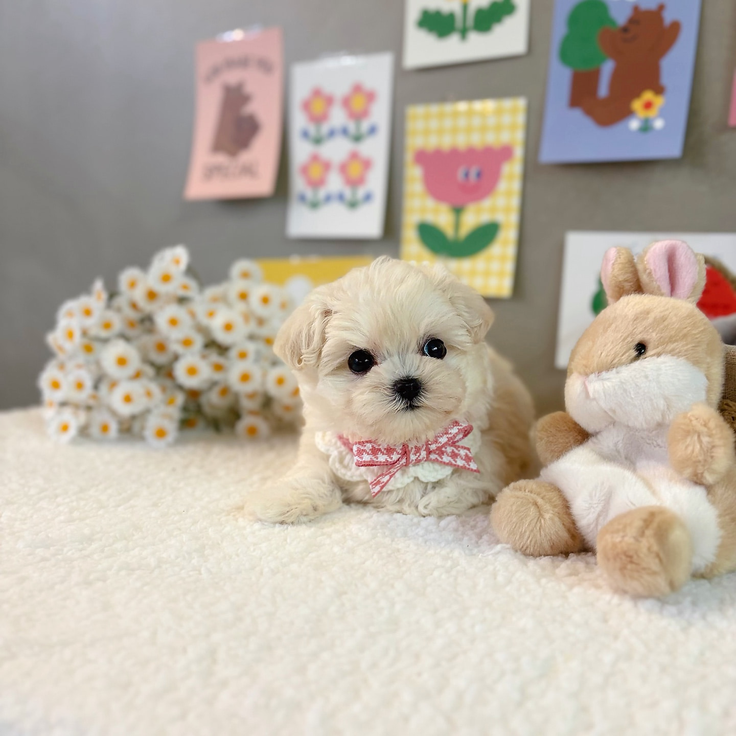 부드럽고 폭신한 크림 화이트 털은 직접 만져보면